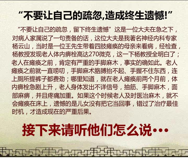 希望尽快康复肢体麻木和患有心脑血管疾病的朋友们,加杨老师微信(微信号:mmt335588 ←长按复制添加),可以通过微信远程给你们诊断分析病情,邮寄这个嘛幕通方子,让更多的人受益!